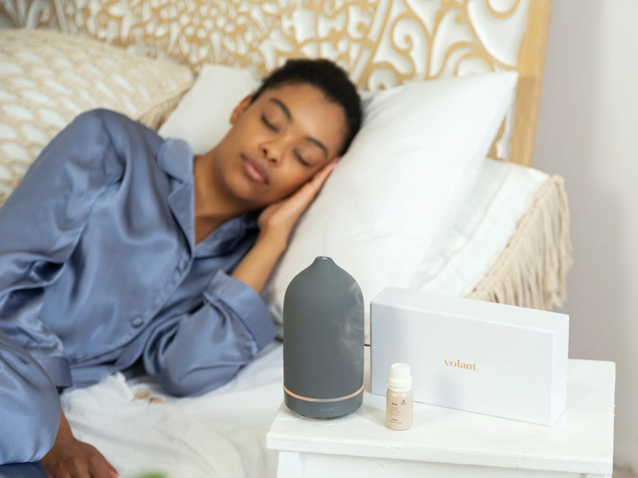 Essential oils are concentrated compounds extracted from roots, seeds, flowers, bark and other natural plant products, which have been used for centuries for their benefits in healthcare, skincare, oral hygiene and food preparation. Drawing on the principles of aromatherapy, they stimulate the body's reaction to scent, triggering different emotional and physical responses, and can help create a calming and sleep-inducing environment.